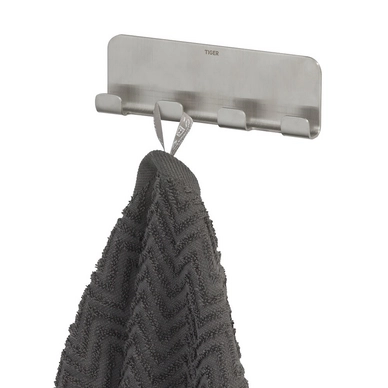 Le crochet multiple Colar de la marque de qualité Tiger est un crochet magnifiquement conçu et très pratique pour vos toilettes ou votre salle de bain. Le multi-crochet a 4 crochets pour suspendre les serviettes et autres objets. Il n’est pas nécessaire d’utiliser des vis et des chevilles lors de sa fixation. Grâce au ruban adhésif double face très fort fourni par M3, le modèle est facile à installer.