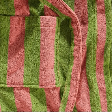 Le peignoir Berry est issu de la collection de la marque OAS. Le peignoir joyeux a un motif rayé dans les couleurs rouge et vert. L’éponge tissée Jacquard indique que le motif est tissé et non imprimé, ce qui rend le tissu plus résistant aux couleurs. Le peignoir est parfait après un plongeon dans la piscine ou après une douche. Le peignoir a une boucle de suspension et possède deux poches sur le devant pour ranger de petits objets. Ce peignoir convient aux enfants.