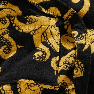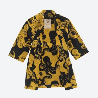 Le peignoir Black Octo est issu de la collection OAS. Le joyeux peignoir a un motif de pieuvres jaunes sur fond noir. Le tissu éponge tissé Jacquard indique que le motif est tissé et non imprimé, ce qui rend le tissu plus inaltérable. Le peignoir est parfait après un plongeon dans la piscine ou après une douche. Le peignoir a une boucle de suspension et dispose de deux poches sur le devant pour ranger de petits objets. Ce peignoir convient aux enfants.