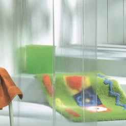 Ce rideau de douche transparent provenant de la marque Sealskin donnera à votre salle de bains une ambiance agréable de par son design. Ce rideau de douche sèche rapidement et ne moisit donc pas facilement. Fait entièrement de polyéthylène-acétate de vinyle (PEVA), un matière plastique durable et résistante, ce rideau est tout de même doté d’une frange en caoutchouc au bas tout au long de sa largeur. Il ne vous sera pas possible de laver ce rideau à la machine à laver. Veuillez noter que les anneaux de montage ne sont pas inclus, et qu’il vous faudra vous les procurer séparément sur notre site.