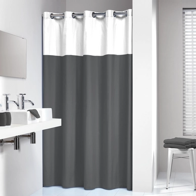 Cet élégant rideau de douche de la marque Sealskin offrira à votre salle de bain une ambiance chic et moderne. Le rideau de douche est pourvu d’une couleur grise et blanche, ce qui le rend facilement combinable avec d’autres accessoires sanitaires. Le rideau a également l’avantage de sécher rapidement ce qui empêchera la formation de moisissure. Le produit est fait de 67% de polyester et de 33% de coton, ainsi que d’une bande de caoutchouc sur le bord inférieur afin que le rideau reste en place. Il est aussi facilement lavable en machine. Le rideau de douche est lavable en machine et est livré avec ses anneaux.
